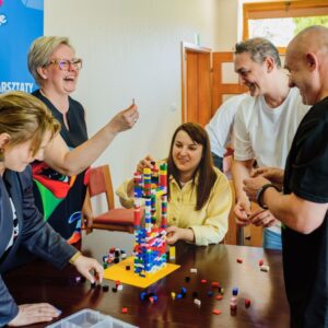 Klocki pobudzają kreatywność, pomagają przełamywać schematy i angażują uczestników w aktywny proces budowania i współpracy.