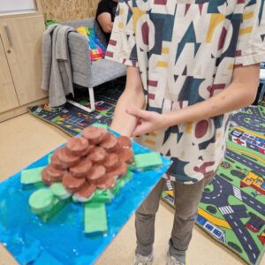 • Mini-murowanie: Budujemy z wykorzystaniem miniaturowych cegiełek! Łączymy elementy za pomocą bezpiecznych zapraw, wznosząc zamki, mury i domki. Często łączymy techniki, np. tworząc wozy strażackie z drewna i bloczków.